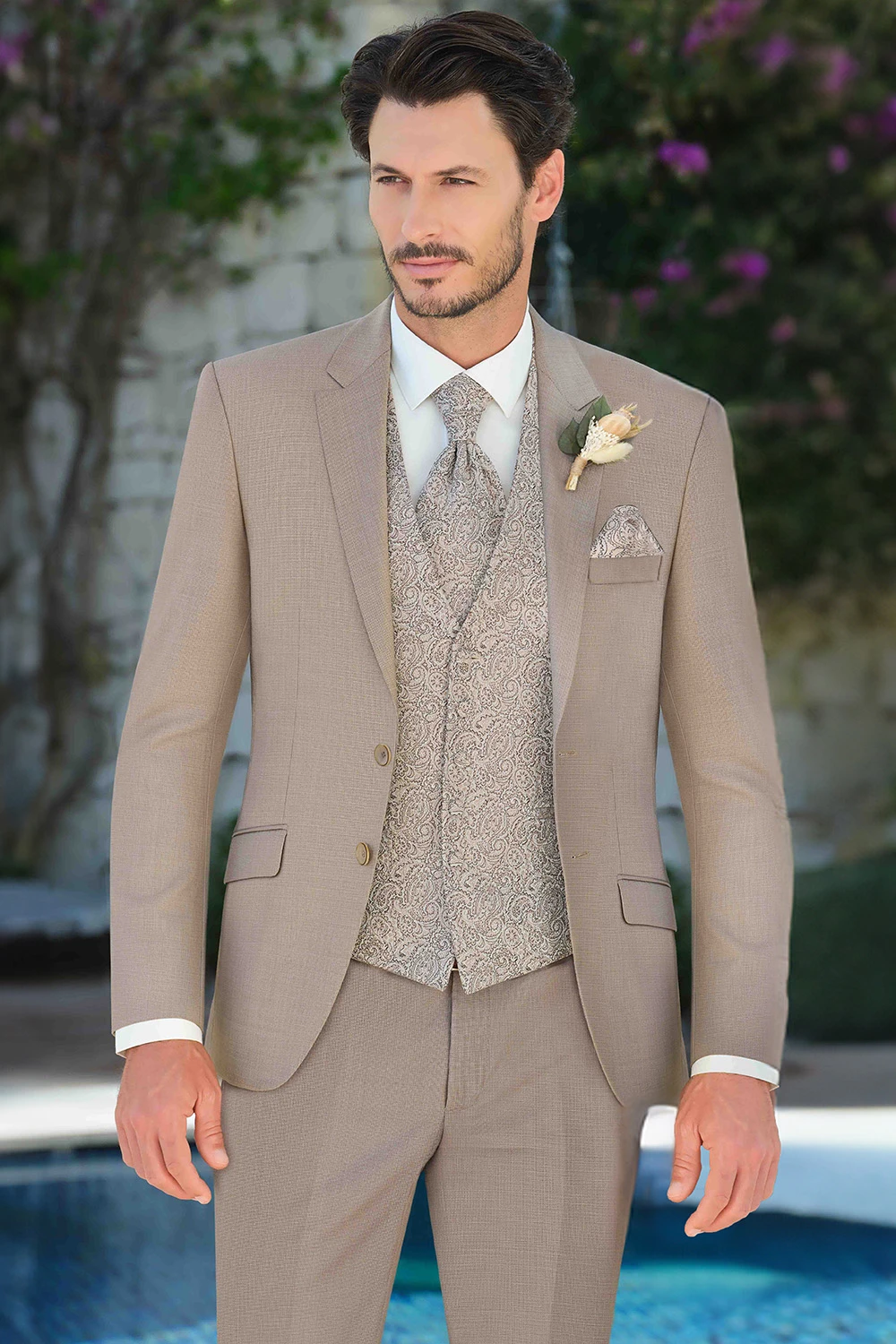 CARACTERISTICIColecția de costume de mireasă Manzetti Significo 88% lână, 8% poliamidă, 4% elastan Culoare maro migdale