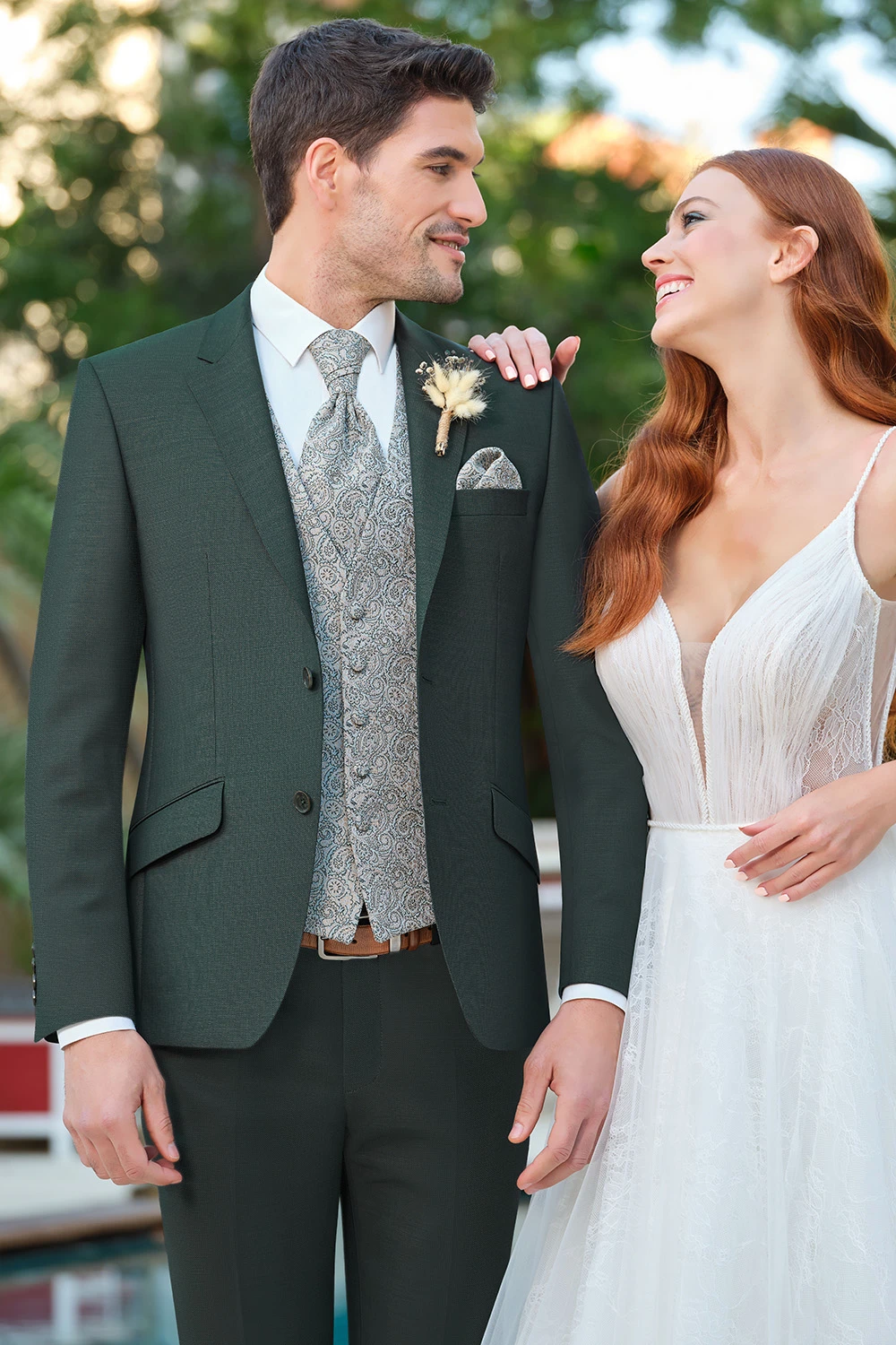 CARACTERISTICIColecția de costume de mireasă Manzetti Significo 2024 88% lână, 8% poliamidă, 4% elastan Culoare verde pădure 5 piese